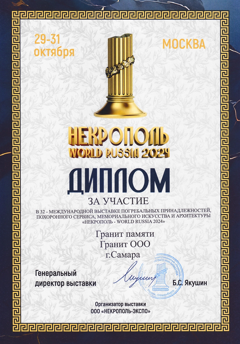 Компания была основана в 1998 году Юрием Григорьевичем Покрышкиным и изначально имела другое название. Свое нынешнее имя — «Гранит Памяти» — она получила в 2019 году, когда руководство принял его сын, Станислав Юрьевич. Вместе с командой он провёл ребрендинг и вывел компанию на новый уровень развития. Более 25 лет мы производим в Тольятти памятники из натурального гранита и мрамора — камня, который сохраняет память поколений. За это время компания значительно выросла: открыты новые филиалы и запущена франшиза, позволяющая распространять наш опыт в других регионах. Сегодня «Гранит Памяти» — узнаваемый бренд с широкой сетью партнёров.