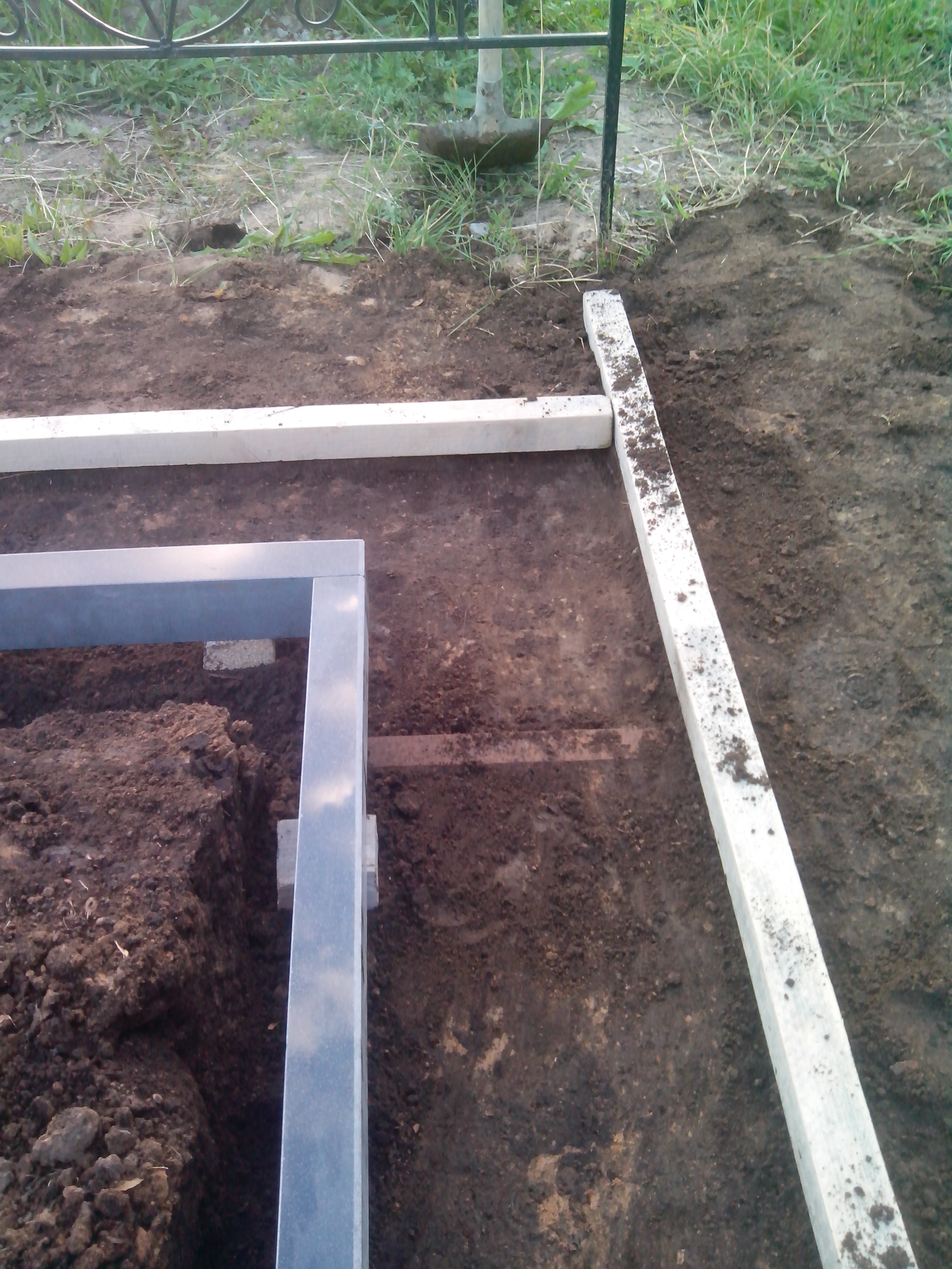 Укладка труб — на участке по периметру могилы размещаются железные трубы, которые служат опорой и обеспечивают необходимую поддержку для дальнейших работ;